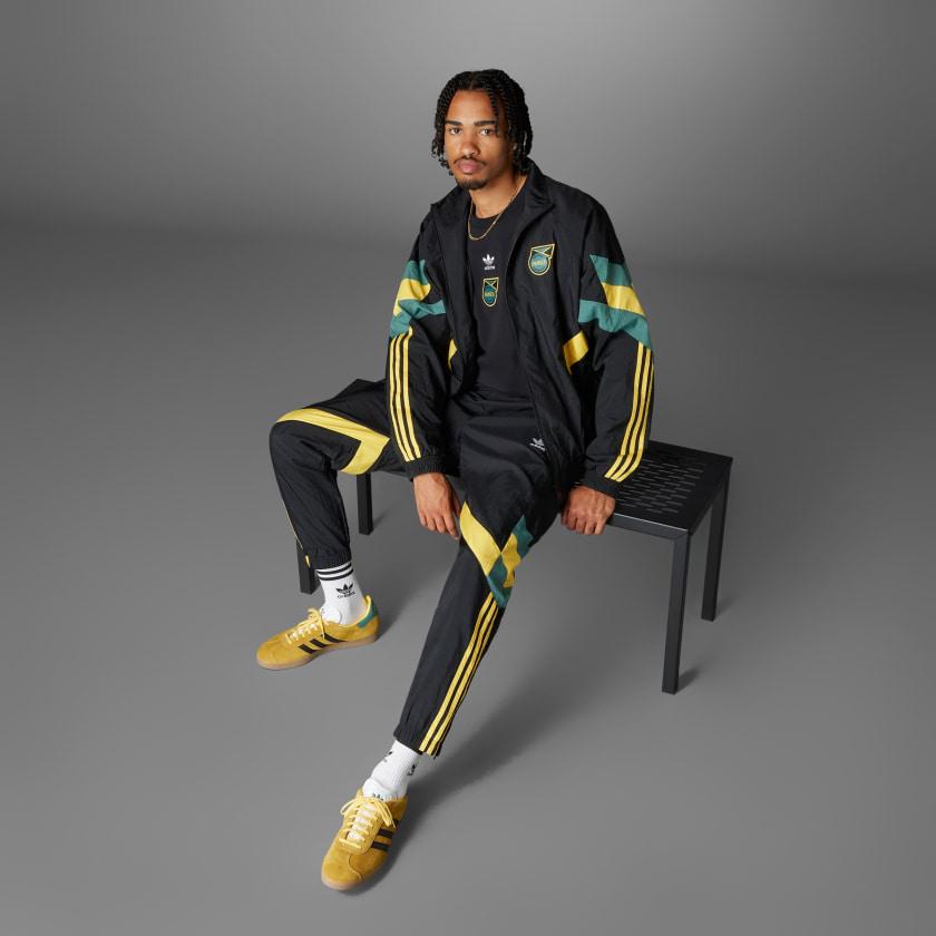 Estilo adidas vintage de Jamaica, fabricado parcialmente con materiales reciclados.