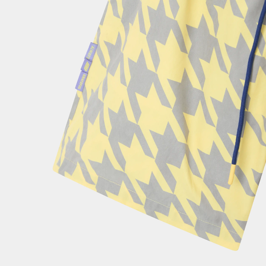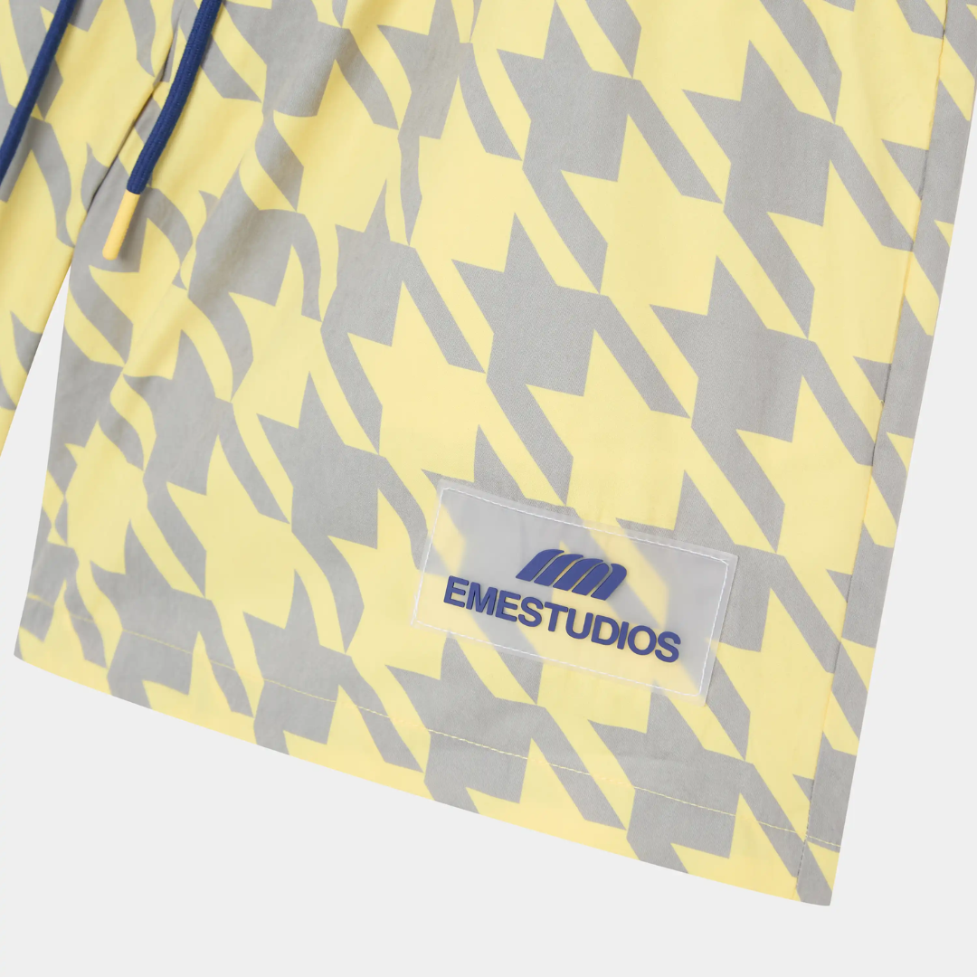 Shorts de baño con estilo geométrico que combina comodidad y diseño. Confeccionado en poliéster y nylon de calidad, cuenta con un patrón all-over que captura la esencia veraniega. Los detalles de ribete en contraste en el frente añaden un toque sofisticado, mientras que la cintura elástica con cordón ajustable garantiza el ajuste perfecto para cualquier movimiento. Ideal para disfrutar del agua con confianza y actitud.